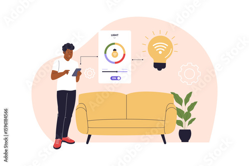 Home pest control service vector. Men professional character wearing uniform and mask using toxic chemical spray processing room killing cockroach harmful insect flat illustration