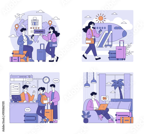 Home repair and cleaning services set, vector flat illustration. Cleaning ladies doing laundry, vacuuming carpet, cleaning house. Electrician, plumber changing light bulb, fixing clogged kitchen sink.