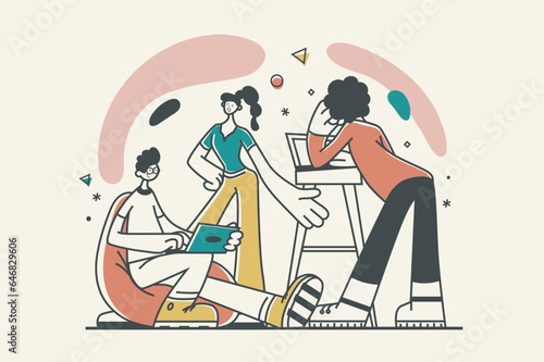 Home repair scene set, flat vector isolated illustration. Repairman, workman characters painting wall, wallpapering, laying tiles and laminate. Handyman service. Home renovation and improvement.