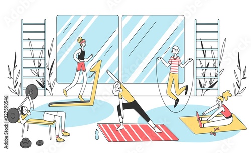 Home schooling, vector flat illustration. Huge laptop and tiny school children reading books. Home education, virtual school, e-learning concept for web banner, website page etc.