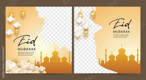 Honey banner vector template set. Paper cut honeycombs with flowing sweet honey, cute bees flying over flowers and collecting nectar, copy space.
