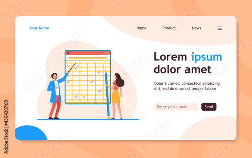 Honeymoon trip landing page design, website banner template set, flat vector illustration. Woman sitting on suitcase. Two tickets for just married, snorkel goggles with hearts. Romantic beach vacation