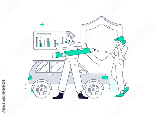 Emergency medical services, vector flat style design illustration. Hospital ambulance car, doctor paramedic emergency ambulance staff male and female cartoon characters with stretcher, first aid kit.