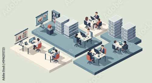 Hospital or medical clinic doctor office, drugstore isometric flowchart, vector flat illustration. People patients buying prescription drugs in pharmacy store after visiting doctor or ordering online.