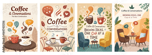 Hot drink card template set. Vector vintage hand drawn tea, coffee, mate, mulled wine, bakery backgrounds.