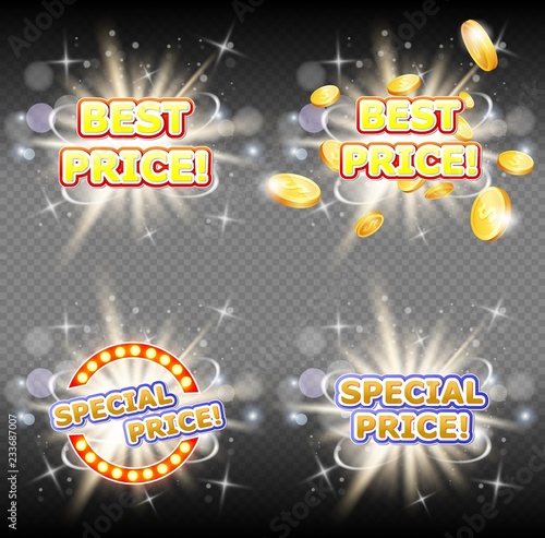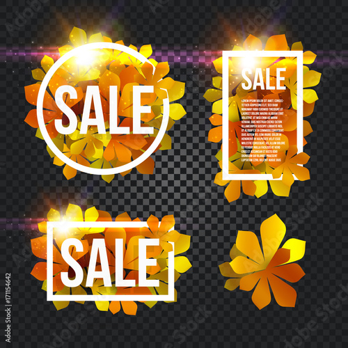 Hot mega super and special sale banner set. Vector illustration. Sale and discounts signs on transparent background.