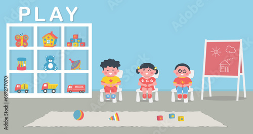 Vector illustration of hotel guest serving himself at restaurant buffet. Hotel restaurant services concept flat style design element.