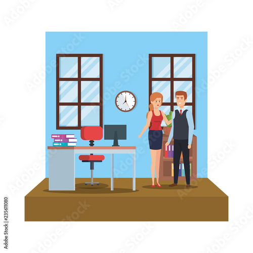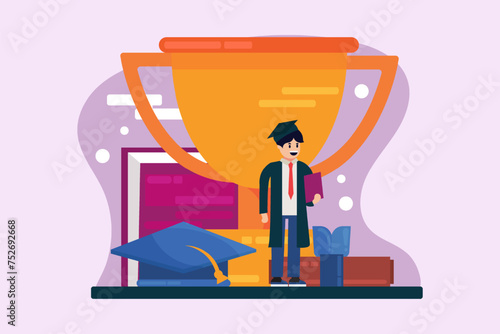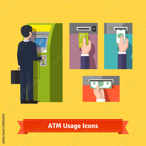 Vector illustration of porter standing next to entrance hotel door and inviting someone to come in. Hotel doormen flat style design element.