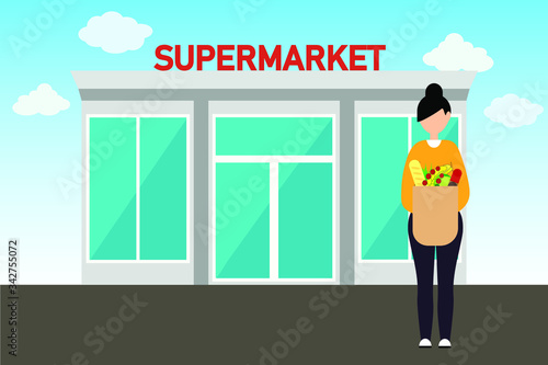 Vector illustration of customer male standing in front of hotel door. Hotel guest concept flat style design element.