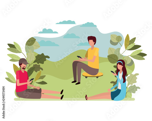 Hotel scene set, flat vector illustration. Porter carrying luggage for tourists, hotel guests relaxing by swimming pool, going sightseeing. Summer vacation, travel, hospitality industry.
