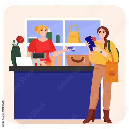 Vector illustration of bellboy carrying suitcases of client female. Hotel porter concept design element in flat style.