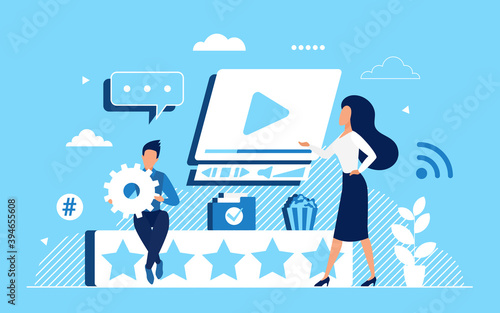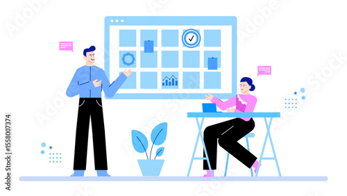 Male character in white apron serving food in guest room, vector illustration. Hotel room service concept for web banner, website page etc.