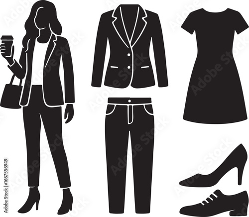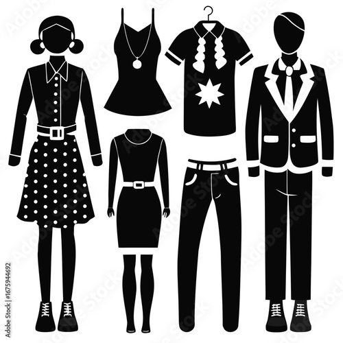 Hotel staff uniform set, vector illustration isolated on white background. Doorman bellman concierge professional working clothes, maid or housekeeper garment.