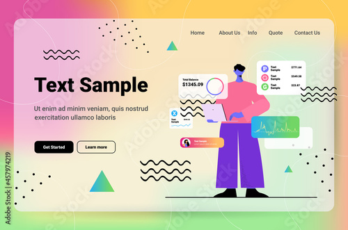 Hotel vector website template, web page and landing page design for website and mobile site development. Hotel services concept with man giving big key to traveler woman with luggage.