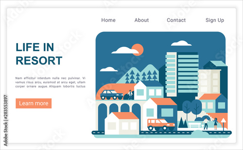 House building landing page template. Vector illustration of tower crane building business activity monitoring dashboard. Construction business concept for website and mobile site development.