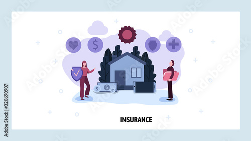 House insurance concept. Life, medical insurance plan. Protect your home. Vector web site design template. Landing page website concept illustration.
