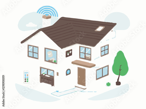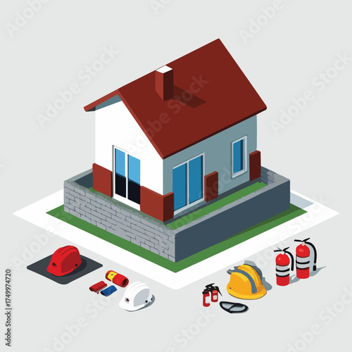 House vector. Secure home building under shield protection icon. Safe lock system, smart safety technology or iot to protect property. Real estate insurance and residential surveillance isometric logo