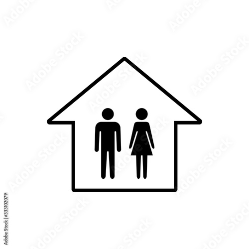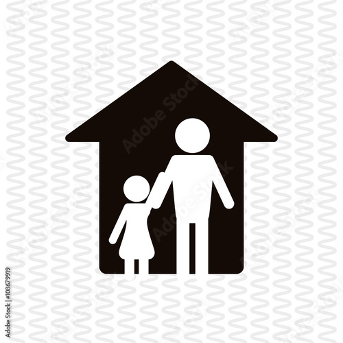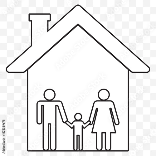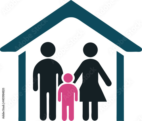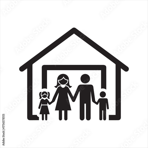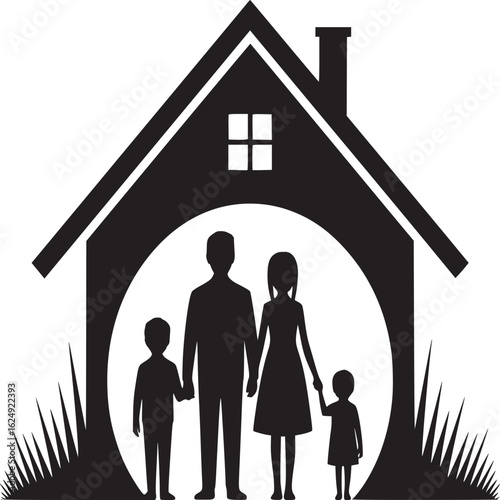 House building with family silhouettes, vector illustration in paper art style. Happy family buying, renting new home. Residential real estate company services.