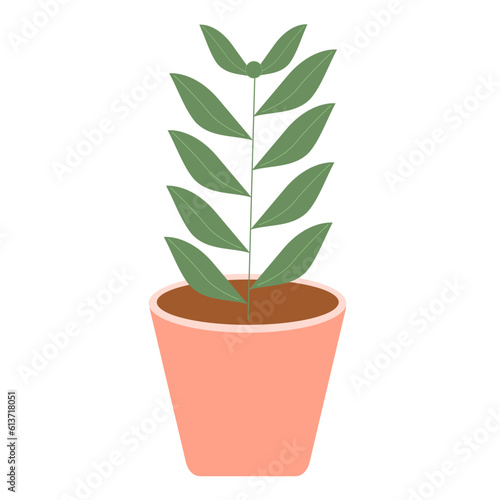 Houseplant vector. Home garden potted flower with green leaf on stem flat icon. Cartoon room decoration isolated on white background. Flowerpot illustration
