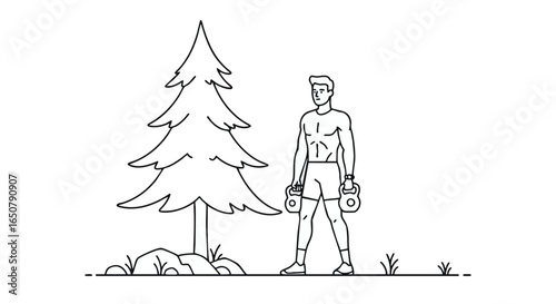 Housework man hanging curtain in bathroom vector icon isolated on white background