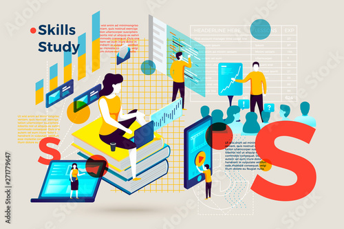 HR manager, landing page design, website banner template, flat vector isometric illustration. HR management, recruiting agency, free vacancy.