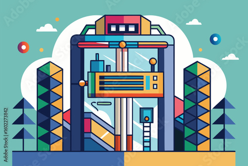 Huge mobile phone with navigation map and location pin on screen, people searching hotel or place they need. Vector flat illustration. Navigation app, car rental, carsharing service.