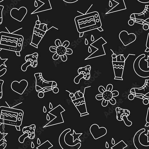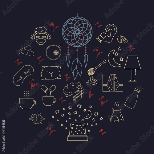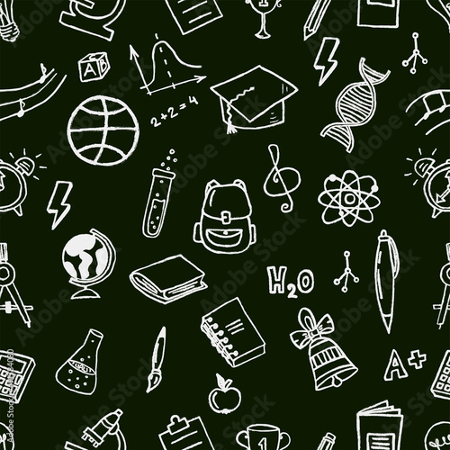 Human head and icons of science. The concept of scientific discoveries. Education and learning process. Vector illustration in linear style