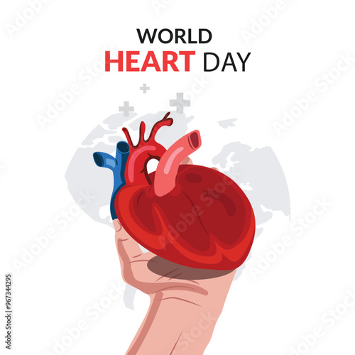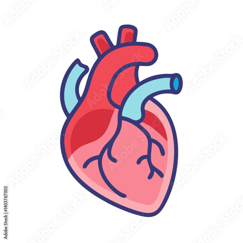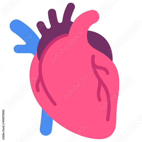 Human heart vector. Organ medical anatomy with blood coronary artery, vein and aorta icon illustration isolated on white background