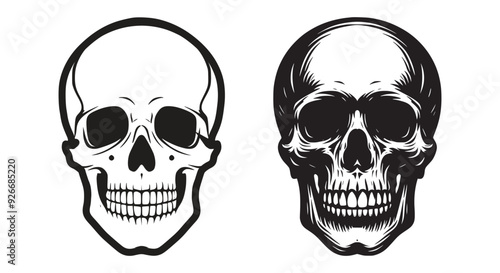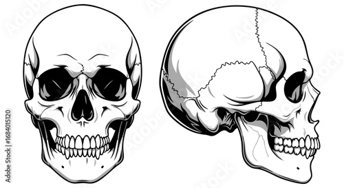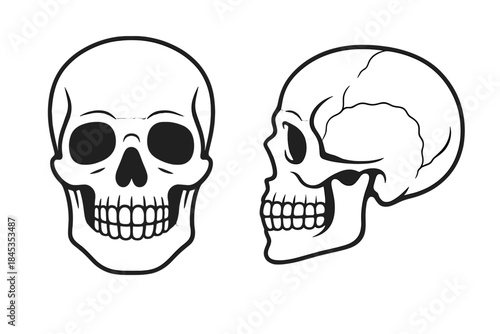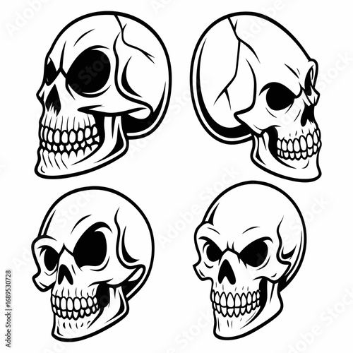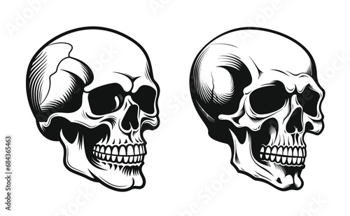 Human skull set, vector hand drawn illustration isolated on white background. Skull t-shirt graphics.