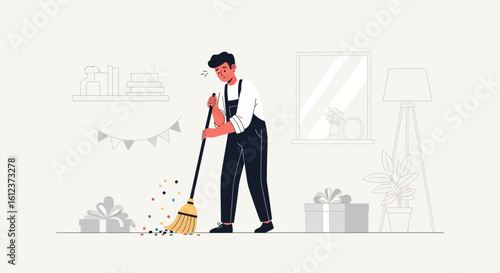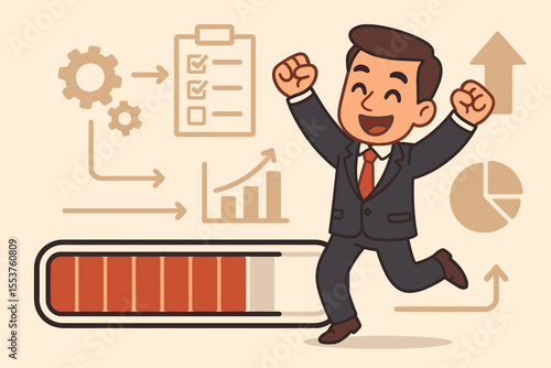 Vector illustration of fisherman catching fish while sitting on chair. Fisher with fishing rod flat style design element, icon isolated on white background.