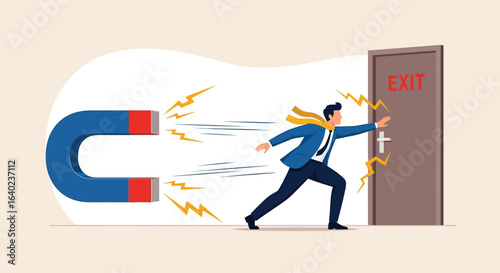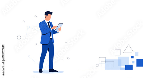 Vector illustration of hunter shooting flying wild duck. Hunter people flat style design element, icon isolated on white background.