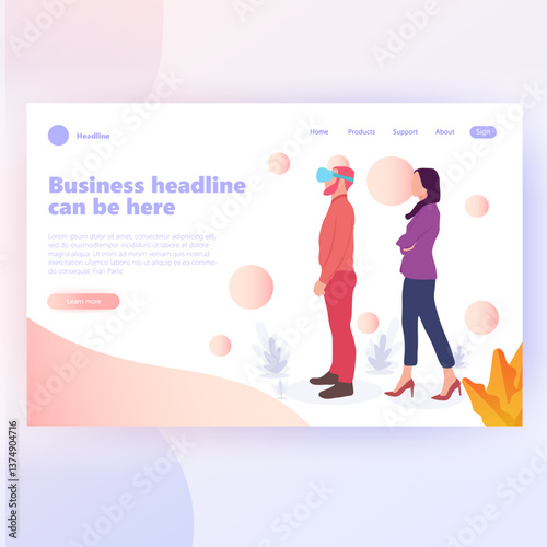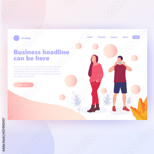 Husband helps his wpregnant wife to exercise with fitness ball. Pregnancy concept illustration. Vector web site design template. Landing page website illustration.