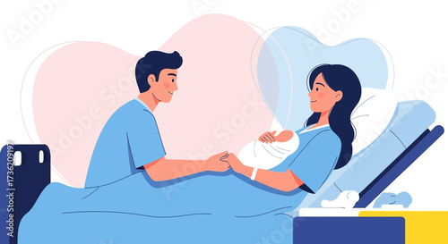 Husband helps pregnant woman give birth vector icon isolated on white background.