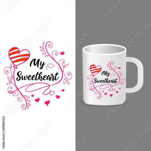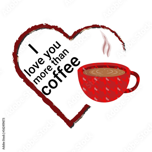 I love coffee quote. Vector illustration of takeaway coffee cup with coffee sayings, spoon and coffee beans heart.