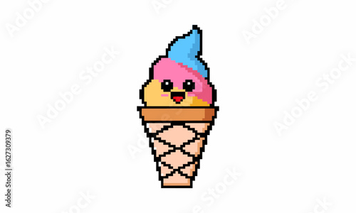 Ice cream cone cute character cartoon vector. Funny pistachio icecream waffle with happy face isolated on white background. Sweet fast food snack icon