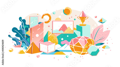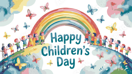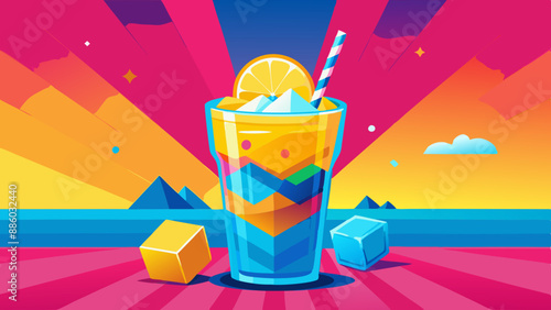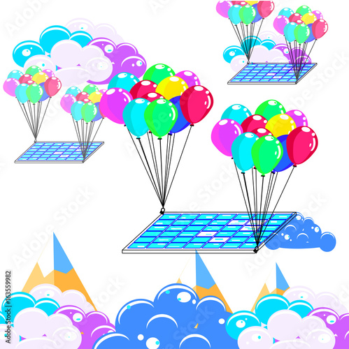 Ice cream packaging plastic bucket, tub, container mockup, paper cut sky with clouds, hot air balloons and rainbow, vector illustration. Natural healthy sweet dessert, dairy food product ads template.