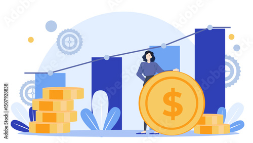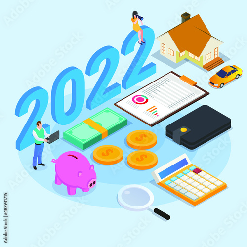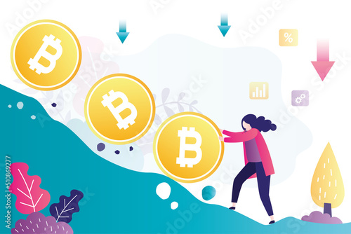 ICO concept vector isometric illustration. Multi-ethnic group of people with dollar, bitcoin, ethereum coins buying ico tokens while making investments into new cryptocurrency project.