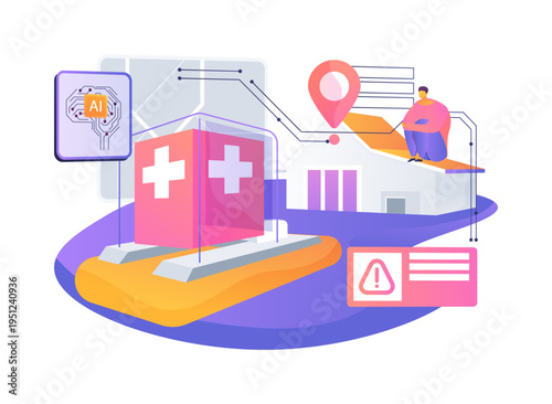 Immigration scene with woman travelling abroad for new life. Vector illustration of female character searching place of destination, home, job occupation for money earning