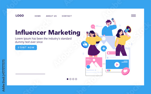 Inbound marketing landing page website template. Vector isometric illustration of laptop, red magnet attracting visitors and potential customers.