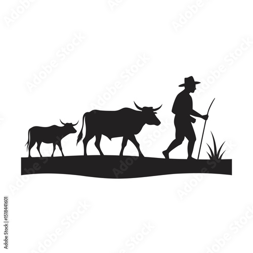 Indian male farmer plowing soil vector icon isolated background.