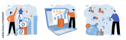 Man with shopping basket, calendar, rising arrow, flat vector isometric illustration. Inflation in economics. Increase in prices for food, consumer goods, loss of purchasing power.