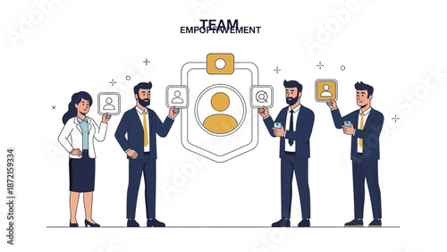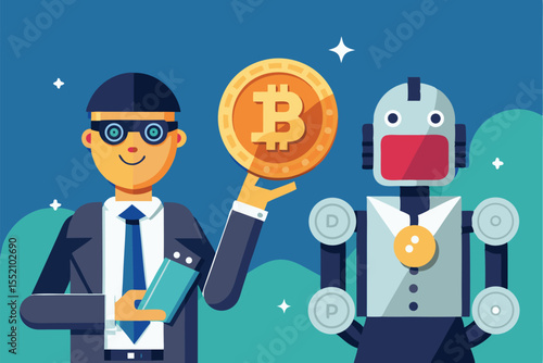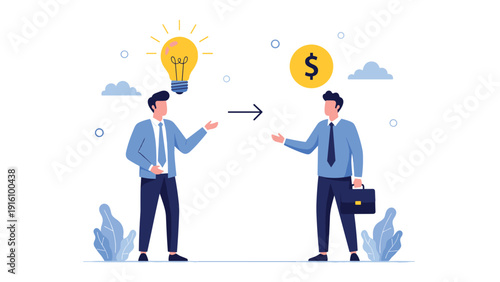 Initial coin offering concept vector illustration. Businessmen blowing balloon with ICO lettering.