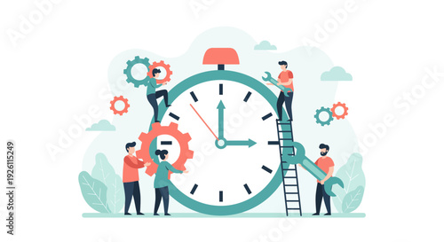 Intermittent or interval fasting. Happy girl practicing fasting and eating on regular schedule, flat vector illustration. Weight management, weight loss.