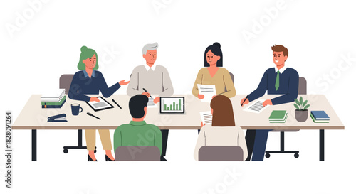 International call center with people from different countries. Diverse customer service concept vector illustration. Customer phone service and business hotline. Office workers with headsets.
