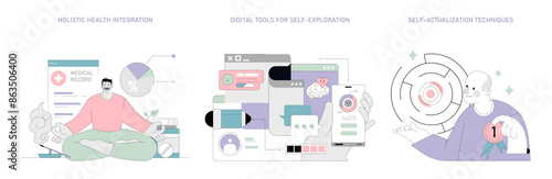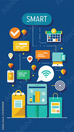 Internet of Things vector concept illustration. Household appliances, consumer electronics, auto icons. Internet of Things lettering on ribbon. Home automation concept design elements in flat style
