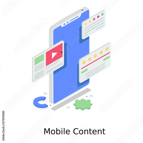 Internet store, flat vector isometric illustration. Online shopping with mobile app, ecommerce, electronic payment, internet retail business.