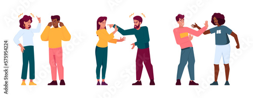 Interracial family couple with children vector set isolated on white background. Happy multiracial man and woman spouse with kids illustration. People pairs relationship in love concept