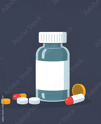 Vitamin vector. Intravenous vitamin C, supplement pills, medicine vial, syringe with medical injection and orange slices. Healthcare and preventive medicine. Advertisement poster