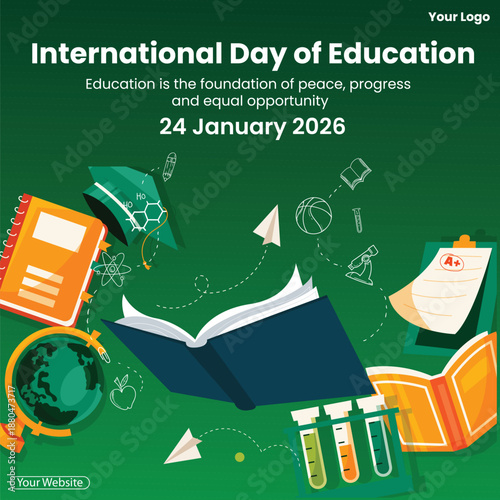Investment in education concept vector flat illustration. Computer, academic graduation cap, hourglass, desk lamp, stationery. Investing in employee education, growth and development poster, banner.