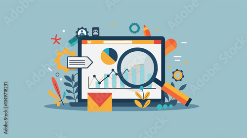 Investments in real estate vector flat illustration. Hand watering money tree with watering can, safe, scales, calculator, world map with location pin, magnifying glass. Financial growth poster banner